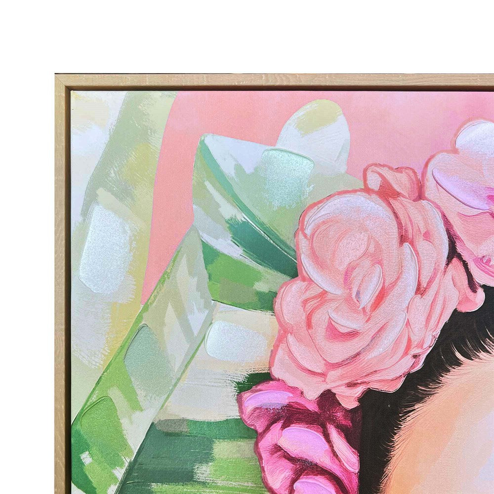 A fun contemporary take of a renowned artist our Contemporary Frida Framed Canvas Wall Art is a playful and colourful addition to any space. The design seamlessly blends colour with sophistication for a modern addition to your styling. Perfect for creating a fun focal point in living rooms, bedrooms, or office spaces. Natural frame textured painting 80x120cm with 50% hand-painted detail.