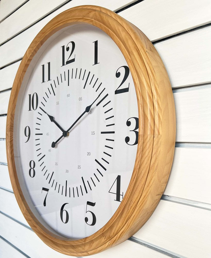 Classic look with minutes and seconds markings inside the numbers solid wood wall clock. Natural 60x60x6.5cm