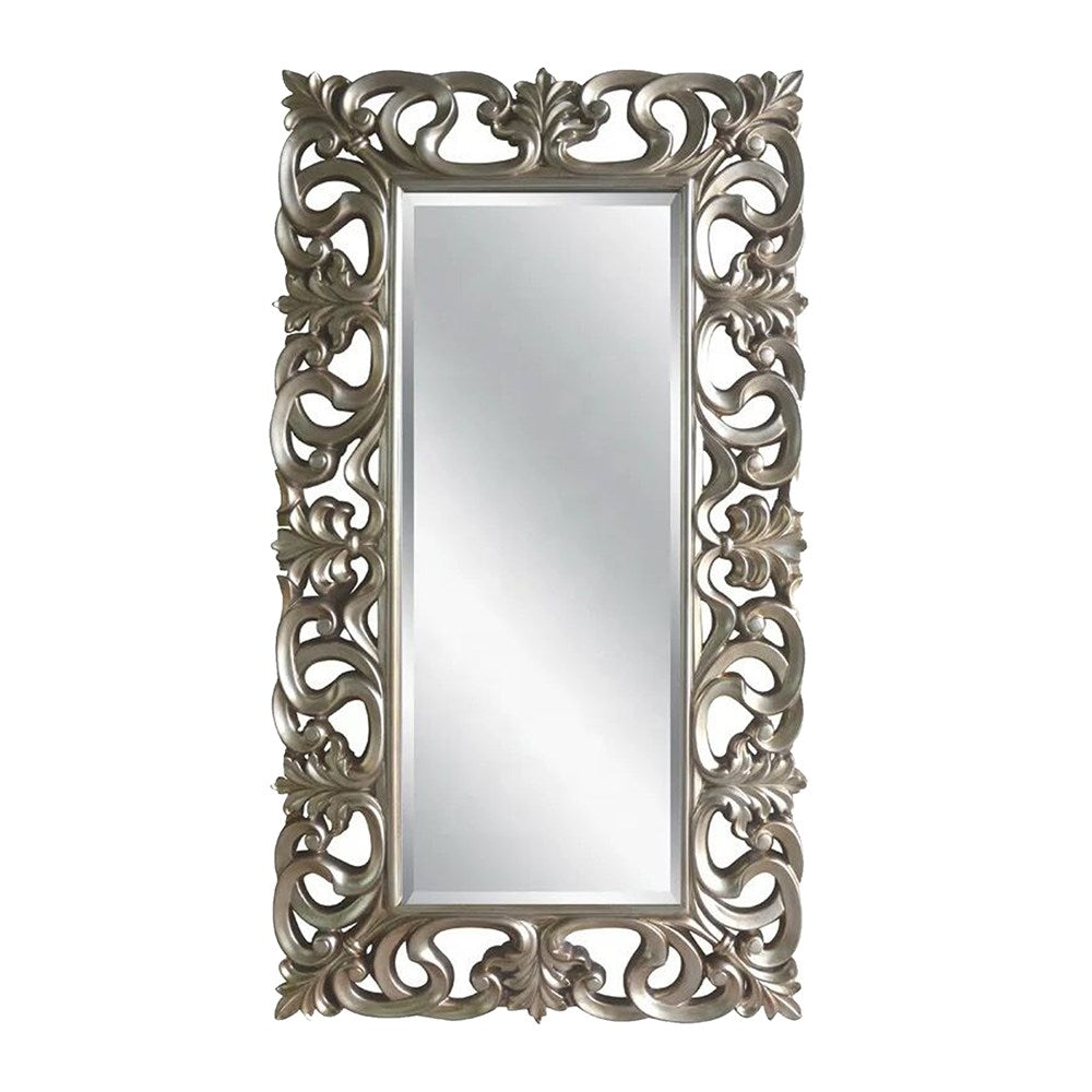 Ornately detailed mirror silver PU frame. Measures H166cm x W90cm. Not recommended for wet areas. Weight 14kg