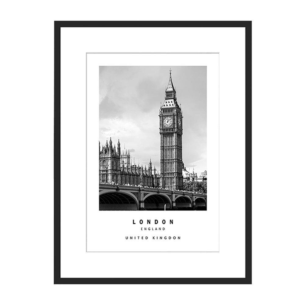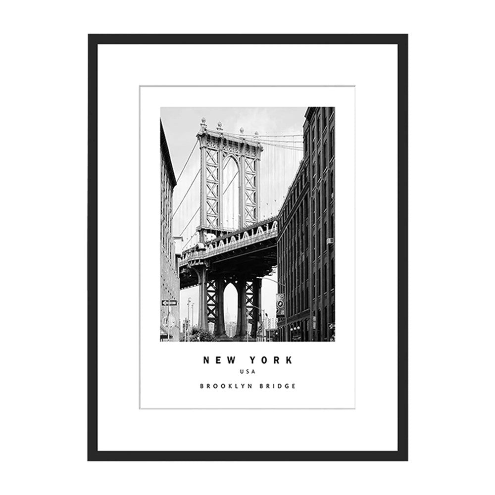 Classic black and white print of Eiffel Tower Paris, Brooklyn Bridge New York and Big Ben London. Comes in a set of 3. Black framed print wall art 30x40cm.