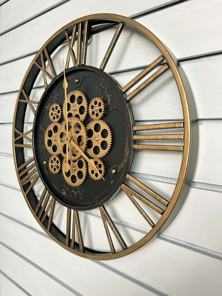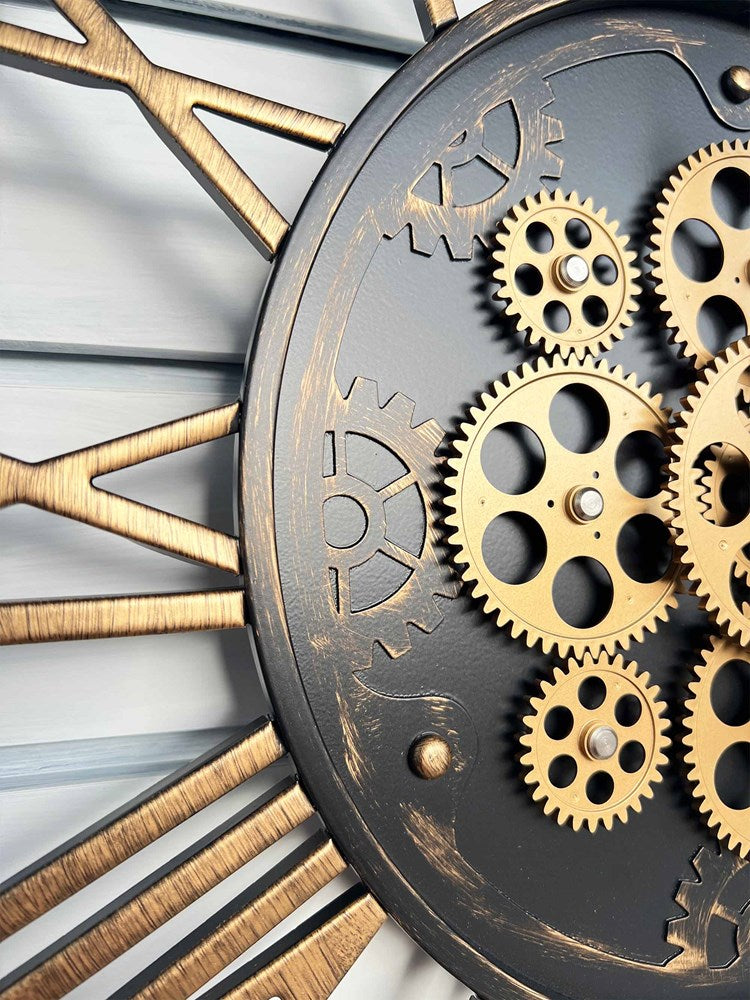 Decorative cogs with roman numerals iron wall clock. Metal 50x50x3cm