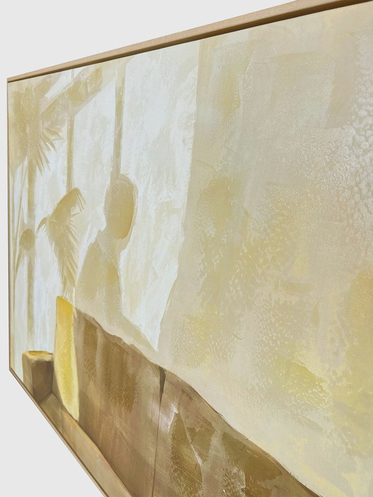 Add a touch of charm to your wall space with our Shadow Framed Canvas Wall Art, this captivating piece features a scene of a couch with a shadow in the background creating many layers to this piece. The neutral tones create versatility enabling this piece to be styled in a range of homes. Perfect for creating a focal point in living rooms, bedrooms, or office spaces. Natural frame textured painting 100x75cm with 50% hand-painted detail.
