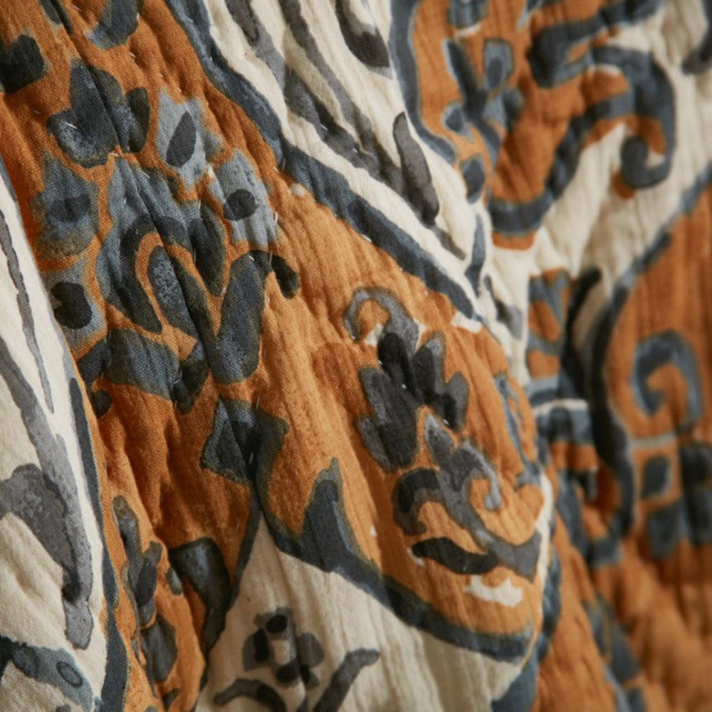 Taking inspiration from traditional tiles and a Moroccan Riad, this Sophia quilt displays a mesmerising combination of muted ochre, soft grey, charcoal and ecru. A statement piece that finishes your bedding completely. 240 x 220cm. 100% cotton with 220gsm cotton filling. Gentle, cold machine wash separately. Don't bleach or dry clean. Tumble dry on low heat.