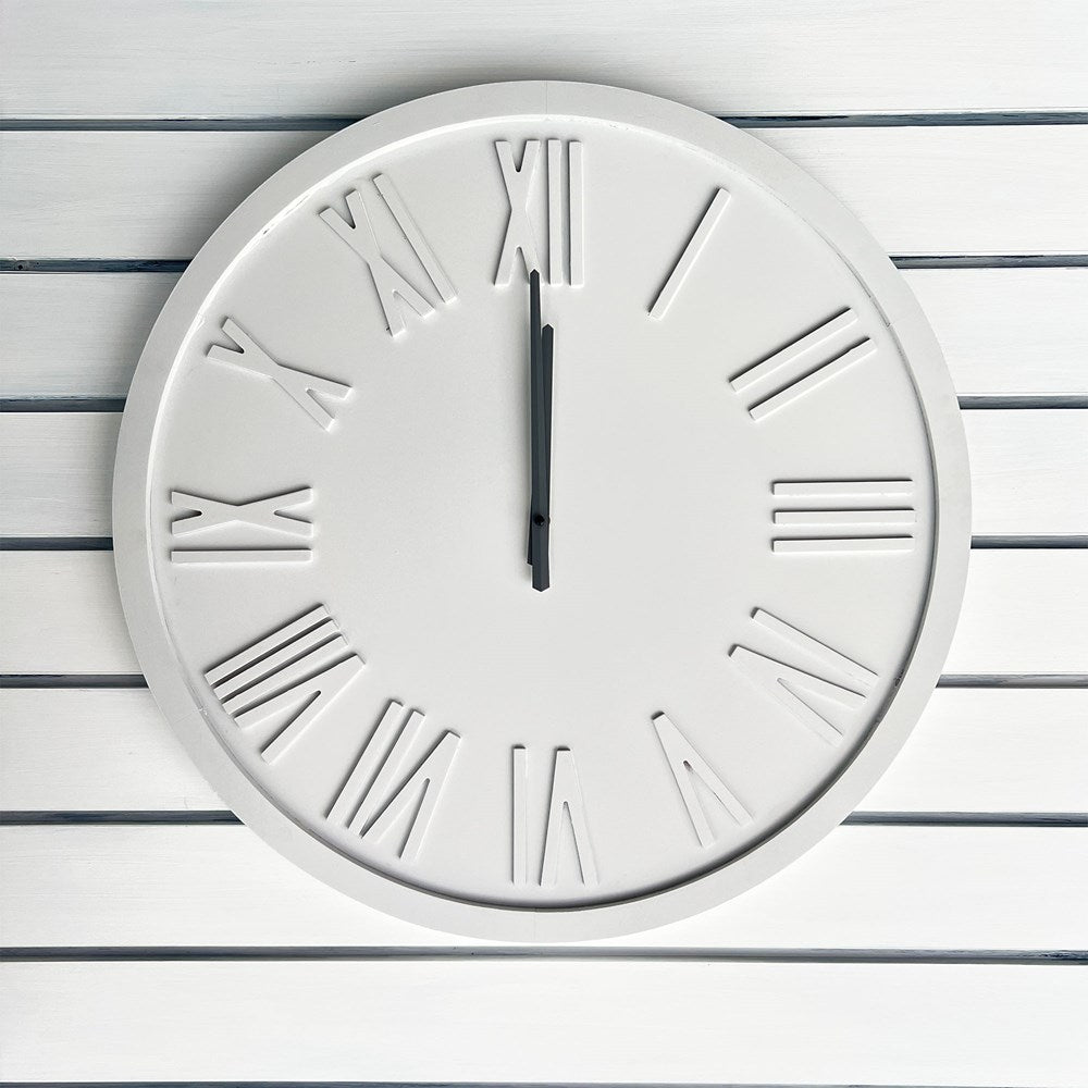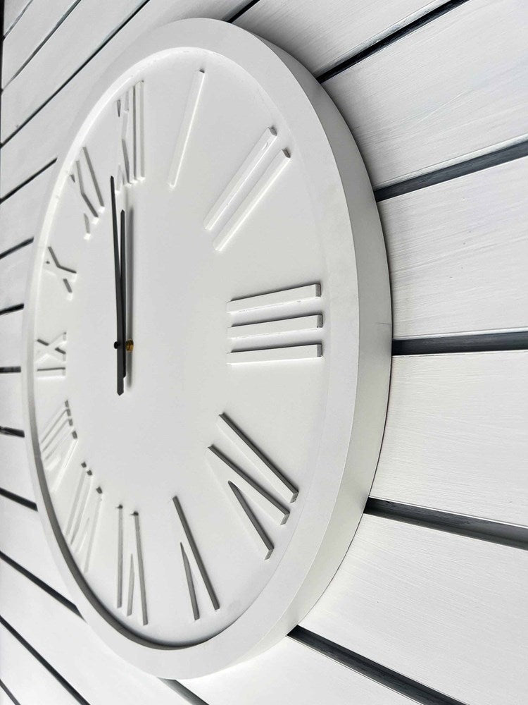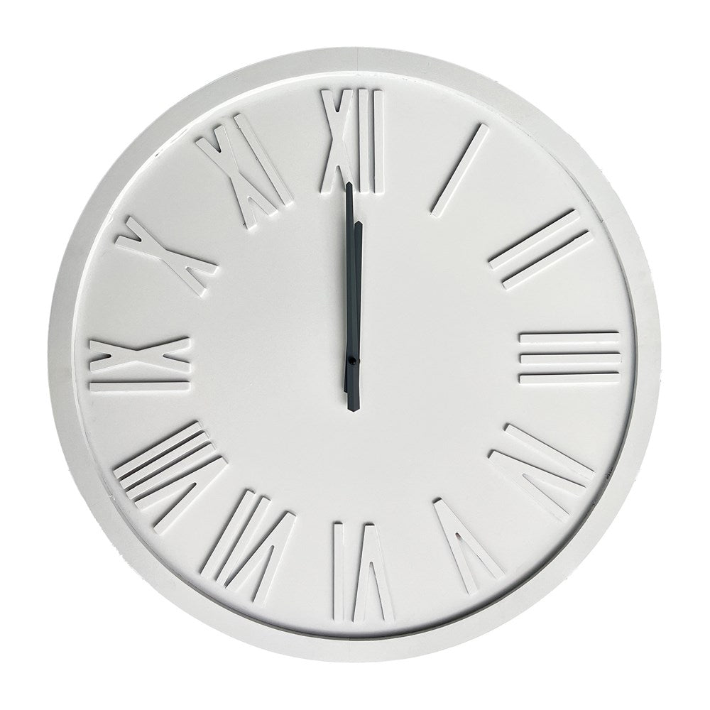 White with steel grey arms engineered wood wall clock. White 60x60x3.5cm